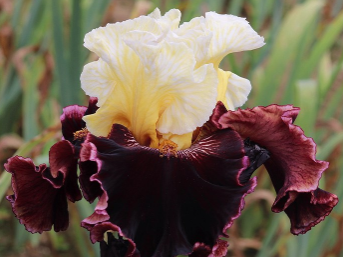 Cherries and Cream is regal elegance served with contrast — a huge but refined and romantic iris that brings sophistication to any garden design. With its cream and yellow-washed standards rising above richly coloured burgundy falls edged in lilac, this variety strikes a perfect balance between light and depth.