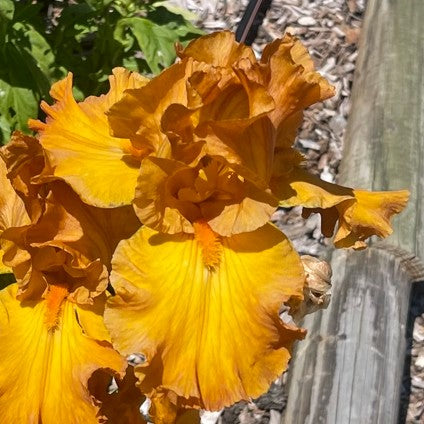 Rich and radiant, Rustic Dream is a bearded iris that brings the warmth of a late autumn afternoon into the garden. Its deeply saturated amber and coppery petals glow in the sunlight, with fiery undertones that make it ideal for earthy, naturalistic plantings. This cultivar feels right at home in rustic gardens, Mediterranean palettes, or as a dramatic contrast against cool greys and weathered timbers. Pair it with native grasses, bronze-toned foliage, or blue blooms to draw out its bold yet grounded personality. One of the most effective irises for adding seasonal depth and textural richness.